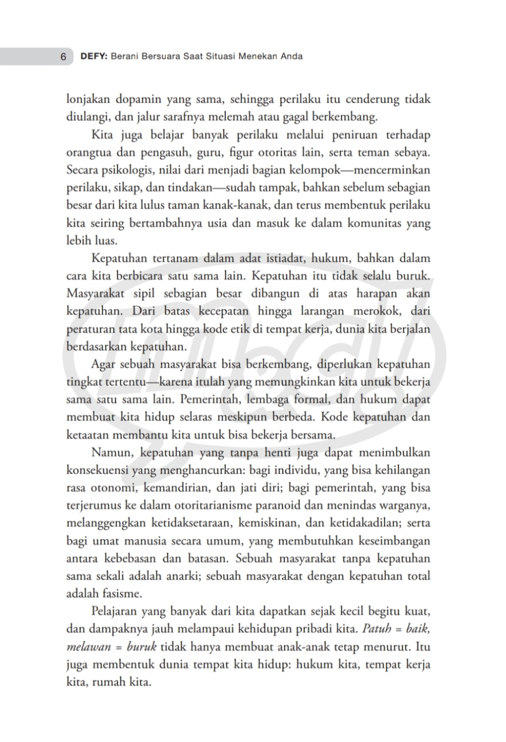 Lewat penelitiannya, ia mengubah drastis pemahaman kita tentang perlawanan; yang sebelumnya disalahpahami sebagai sifat negatif, menjadi kekuatan positif yang krusial bagi perubahan pribadi dan sosial. Melalui lima tahapan perlawanannya, Dr. Sah membekali kita cara-cara sederhana untuk membuat keputusan yang selaras dengan nilai-nilai kita. Defy jadi panduan kita tentang cara bersuara dan bertindak di saat-saat yang paling bermakna.